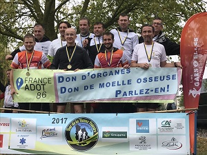 L’association, qui courait de nouveau pour l’ADOT 86 – Association des Dons d’Organes et de Tissus -, souhaite remercier Mme DELANOY, Présidente de l’ADOT 86, et Eric PINGUIN, du magasin RUN AND DUNK, qui a fourni aux coureurs et aux accompagnateurs un T-Shirt spécifique pour cet événement.